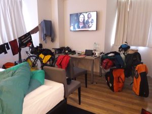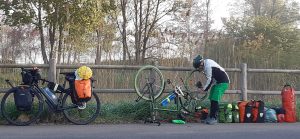 Samozřejmě, že píchnutí kola patří k dobrodružství jako je tohle, ale 2x za sebou po 10 minutách, to mě dojalo, než jsme ve vzorku pláště objevily toho zločince. Všechno složit, slepit, naložit a jedeme dál. když neni nic horšího…….