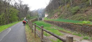 My se vydáváme na další etapu, čím západněji, tím více rozkvetlých luk a obrovských ovocných sadů. Cesta ubíhá jako po másle a sluníčko nejen hřálo, ale dokonce bylo vedro. Už odpoledne jsme byly v kempu Murgtal. Tady byli povětšinou celoroční “kempáci”, lidé kteří se spokojí s málem, nebo nemají tolik peněz, aby si mohli dovolit byt. Tady si můžou pronajmout pozemek 11 Euro m2 i s plynem, což taky neni málo. (na měsíc) Žije zde úplně jiná vrstva lidí, než s kterými jsme se doposud setkaly. Daly jsme si pivko, někteří přisedlí zvědavě k nám a povidali o problémech které je trápí a mají ve společnosti.