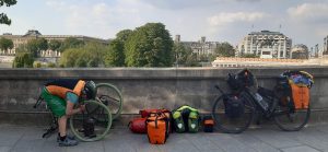 Trochu vyčerpány, ale zdrávy jsme po 1500 km dorazily do Paříže. Tady jsme uvítány hlukem, troubením a spěchem. Neskutečné množství cyklistů, zleva, zprava, mezi autama, zelená nebo červená to je jedno, kdo je rychlejší ten vyhrává. Na Pont Neuf mě moje zelené pláště nechaly potřetí ve štychu, pro změnu přední kolo. Tisíce cyklistů a ani jeden se nezeptal jestli nepotřebujeme pomoc.